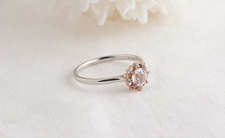 Deepen your connection with a promise ring by Simon Curwood Jewellers, featuring white sapphires and diamonds.