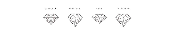 This refers not to the shape of a diamond (round, princess, pear) but to its symmetry, proportion and polish. Diamond cuts are graded on a scale of Excellent, Very Good, Good, Fair and Poor. The biggest factor in the score is based on the width of the table, height of the crown and the depth of the pavilion in each diamond. A complex analysis, there are three primary classifications in defining the cut of a diamond;