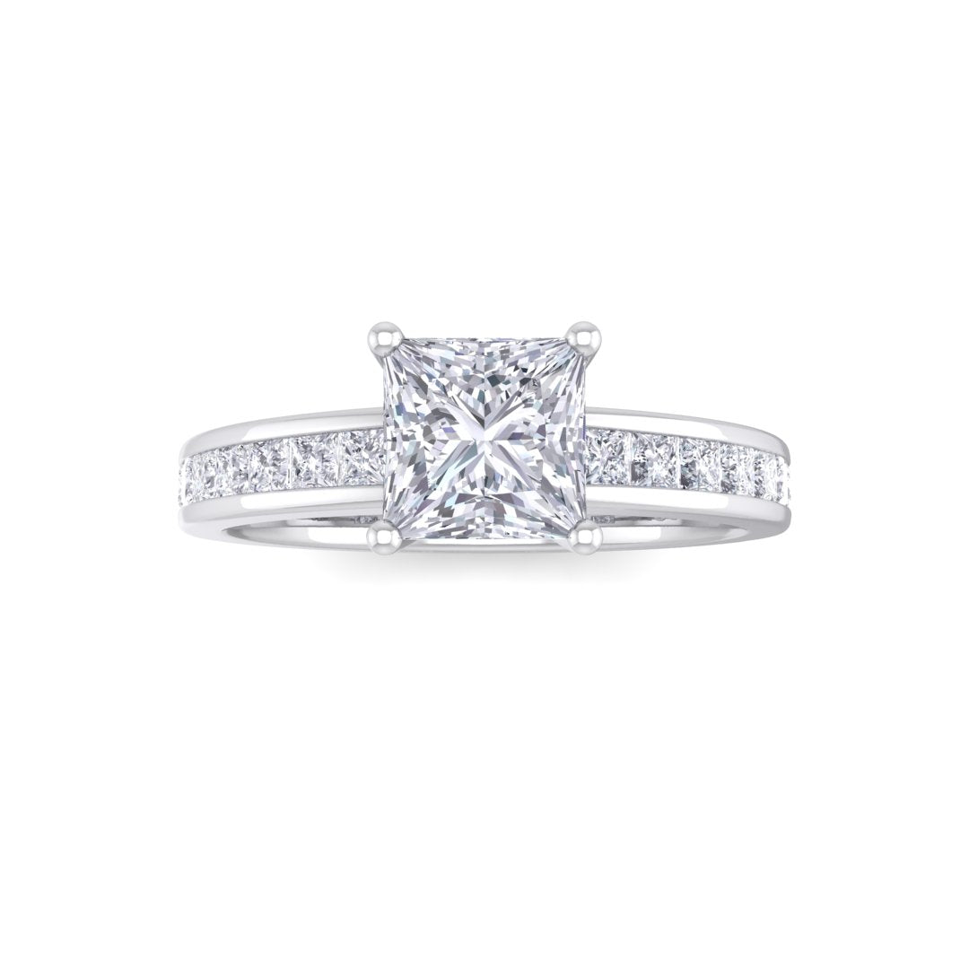 18k White Gold 1.0ct Princess Cut Lab Diamond Solitaire with Shoulder Accents Engagement Ring 1.5tdw