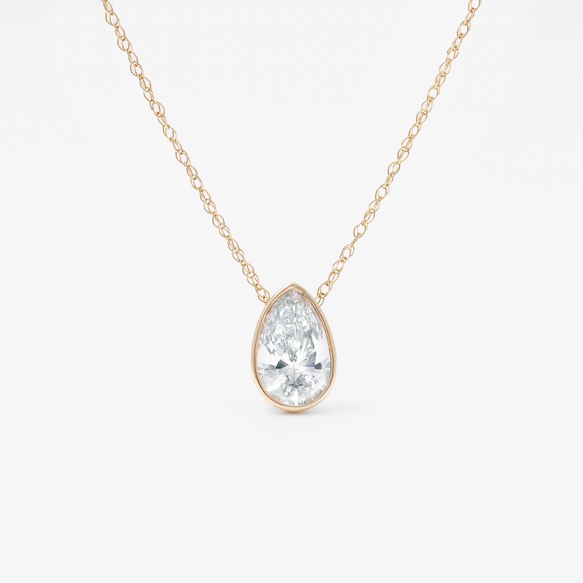 9K Yellow Gold 0.70ct Bezel Pear Lab Diamond Slider Pendant With Chain 45cm.