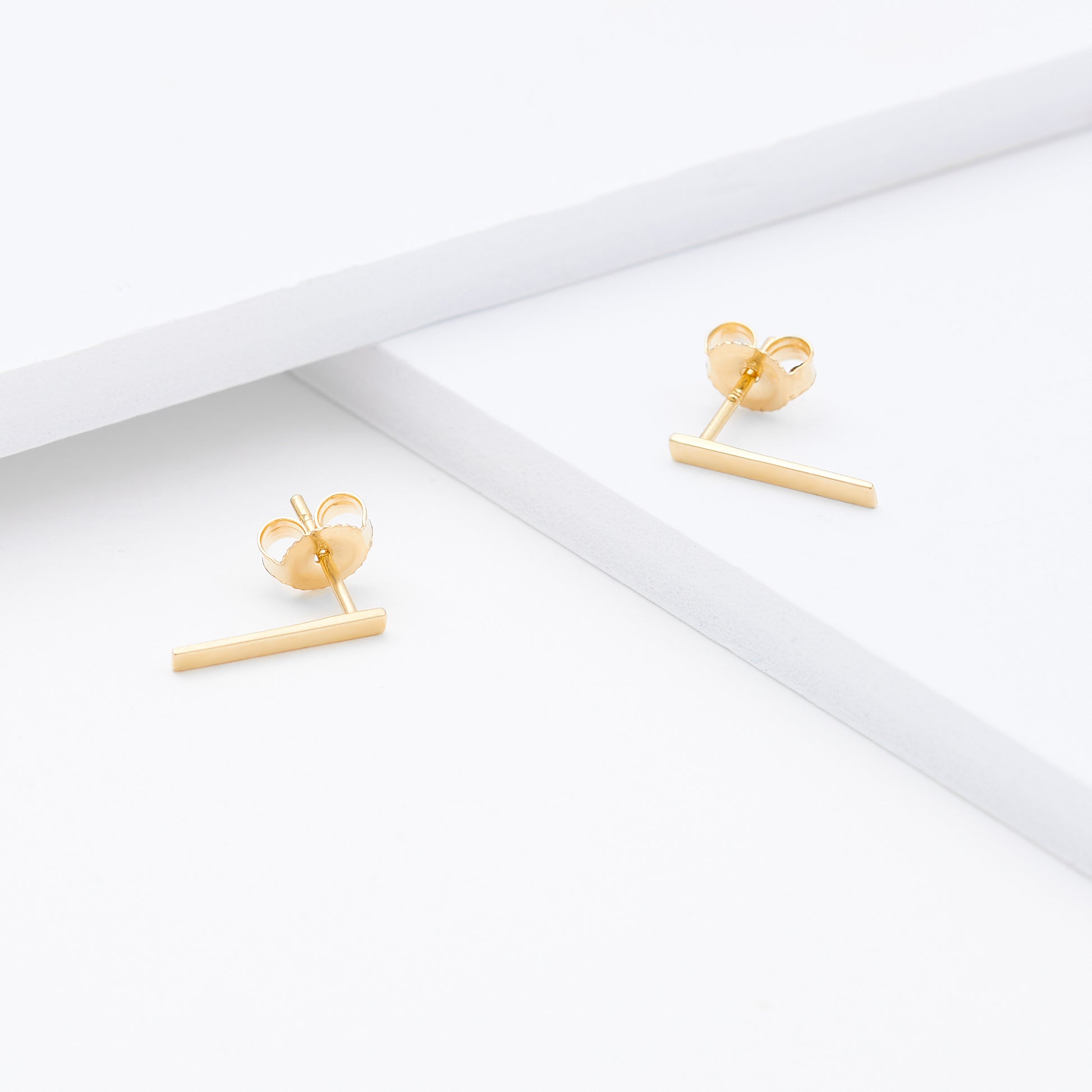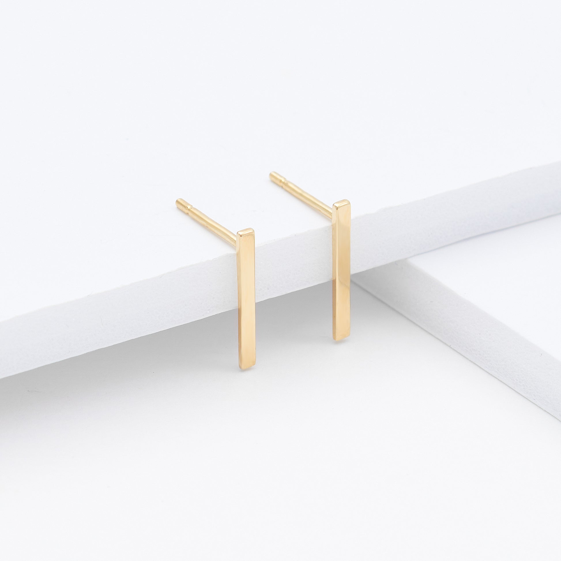 9K Yellow Gold Long Bar Stud Earrings 11mm