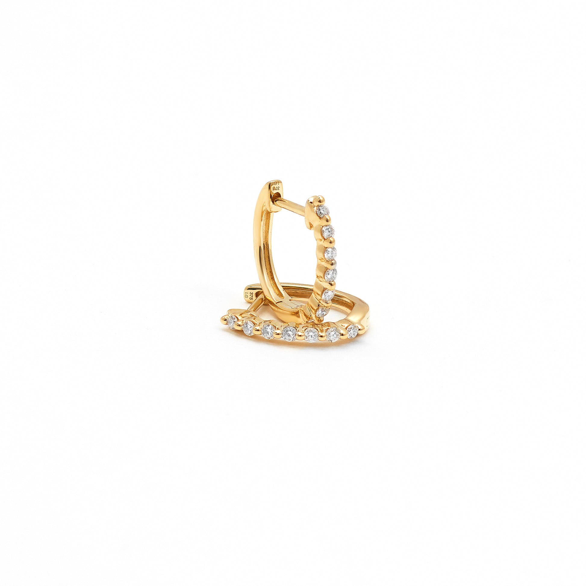 An elegant pair of diamond huggies are always in fashion. These stunning huggies feature a shared prong design giving the illusion the diamonds are floating and offer maximum sparkle. A modern twist on the traditional diamond huggie.