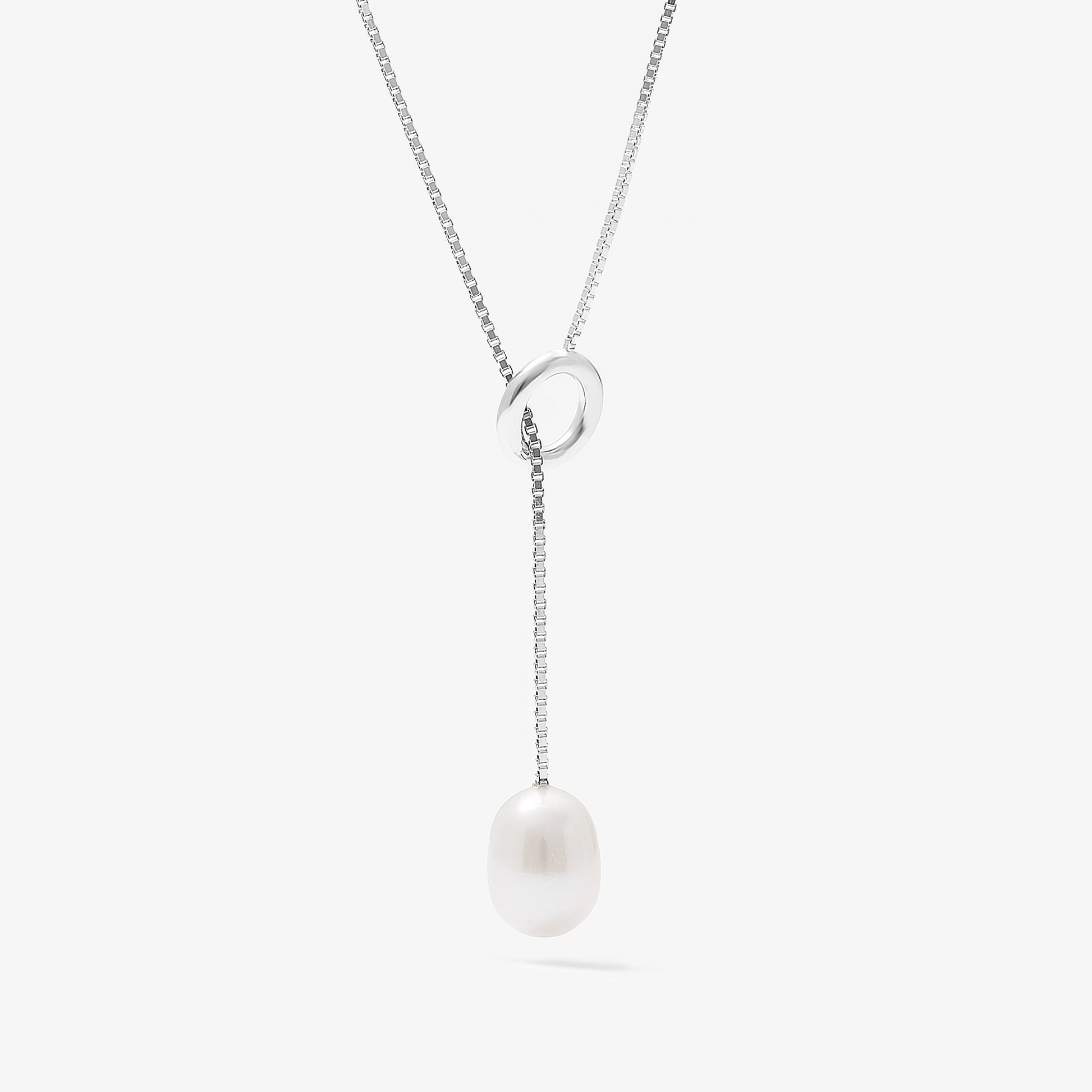 You will look divine in this lariat necklace, featuring a glowing 7mm freshwater pearl drop suspended from a box link chain. A stunning design for those special occasions.