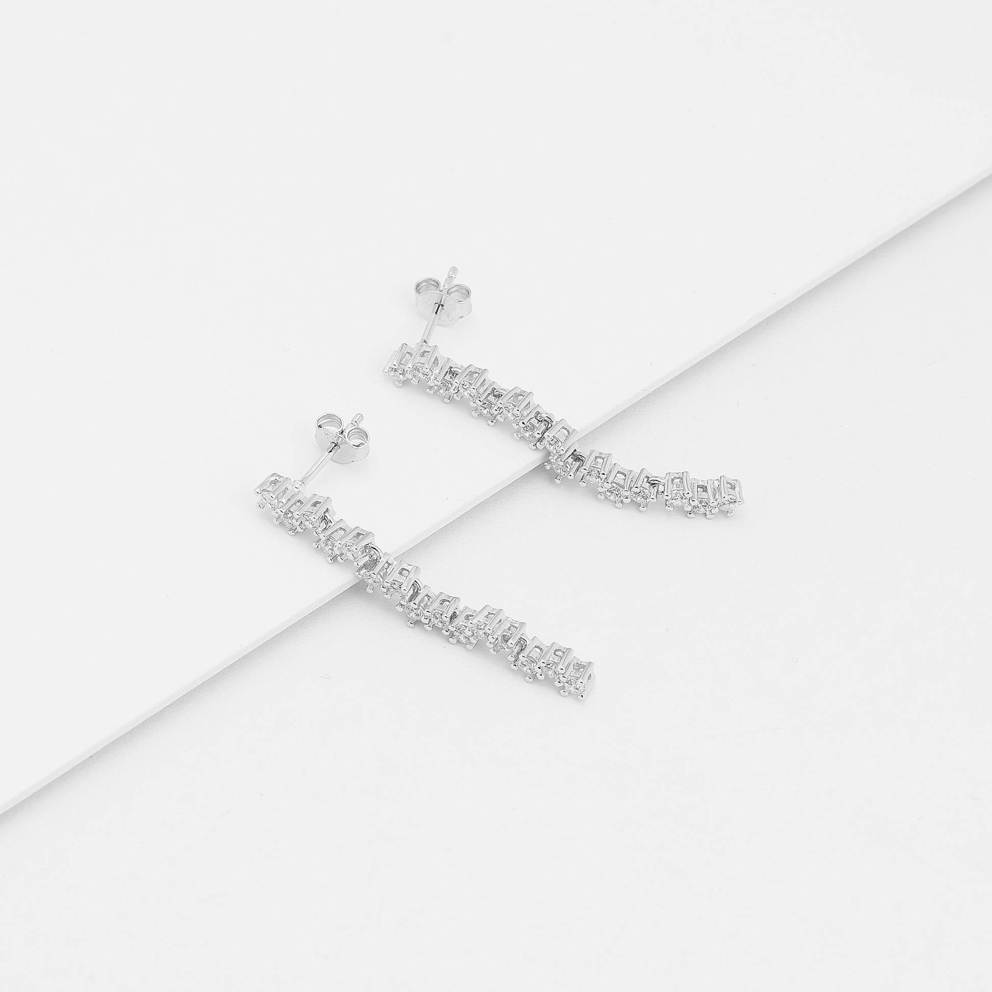 Sterling Silver Zirconia Staggered Drop Stud Earrings